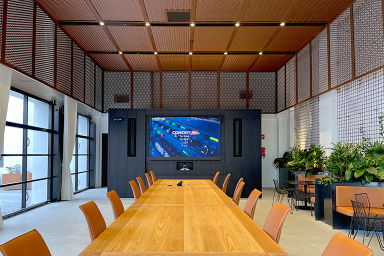 Built in 1920, the Hayesbury once operated as a two-building warehouse for ladies hat manufacturer R.C. Henderson. In 2020, Intermain were tasked with the refurbishment and transformation of this space into the new Goodman Group headquarters in Rosebery. Ensuring that the new fitout maintained the industrial history of the area, whilst providing a modern tech-savvy workplace, Concept AV were contracted to design & construct an array of audio-visual solutions into this impressive space.