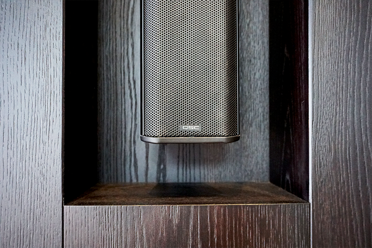 Throughout the open workspace areas in the buildings, a QSC background audio system consisting of over 20 x QSC Satellite surface mount speakers were installed.