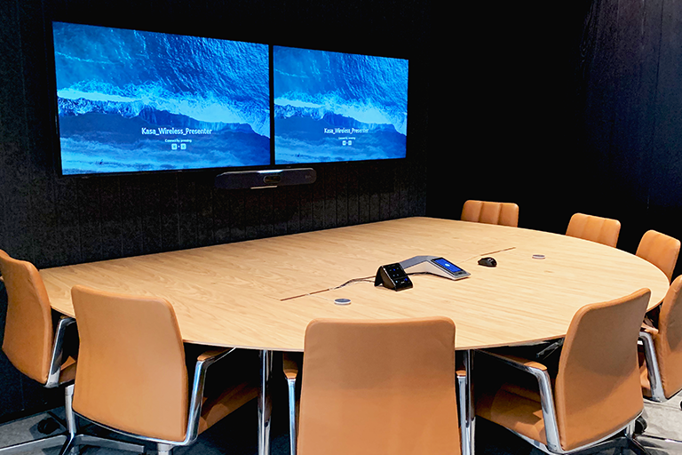 Similar in design to Type 1, the Type 2 meeting rooms catered for small meetings between 6-8 people, with the addition of a video conferencing requirement. To account for this variation, Concept AV installed a Polycom Studio X50 Video Conferencing system which features an all-in-one sound bar. With 4 microphone array, inbuilt speakers, and a camera with 120° field of view, this high-performance bar enables seamless content sharing and unified communications, without the need for a computer.