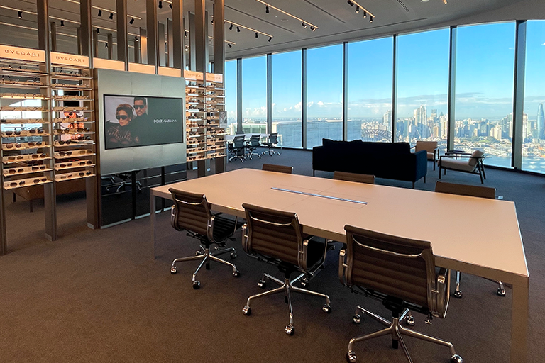 Complete with sweeping panoramic views of Sydney, EssilorLuxottica’s new ANZ headquarters is a true reflection of the global eyewear giant’s Italian DNA. Sophisticated, Sleek and stylish, this 3-level fit-out in North Sydney was designed in collaboration with the team in the Milan HQ, and features luxurious meeting rooms, a high-end showroom and open plan office setting.