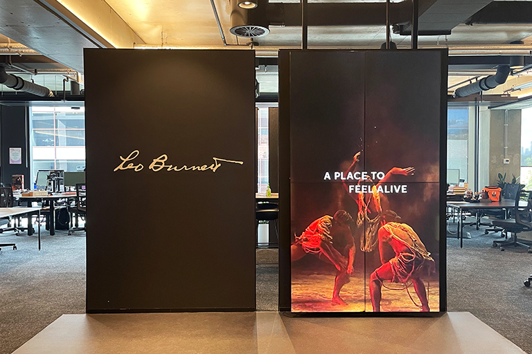 In the reception area of Publicis’ Sydney Headquarters, guests are greeted with an impressive, cutting-edge 18 Cabinet Samsung LED Video Wall. These tiles which have a pixel pitch of 2.5mm are made up of the industries highest quality LED diodes, and are a cost-efficient solution with impressive picture quality.