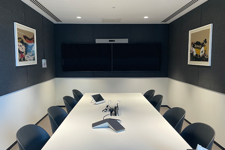 Publicis also required 3 x 10-person video conferencing specific meeting rooms and a 16p Boardroom with a similar setup. Concept AV integrated Cisco Webex conferencing equipment into these spaces including the soundbar, camera, Touch 10 touch panel, and built-in Codec. To enhance pickup of present personnel, additional Cisco telepresence table extension mics were included.