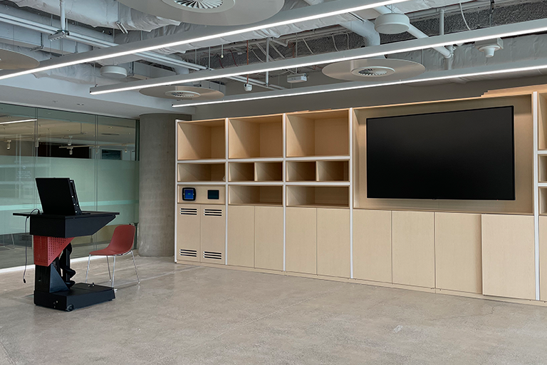 The learning studios AV systems have been designed to provide comprehensive and seamless solution for classroom instruction, presentation, and distance learning, while maintaining functionality and quality to support room reconfigurations and multiple layouts. The systems feature a wide range of components from learning manufacturers including Crestron, Aver, Panasonic, Audio Technica, QSC, Williams Sound, Tannoy, and more.