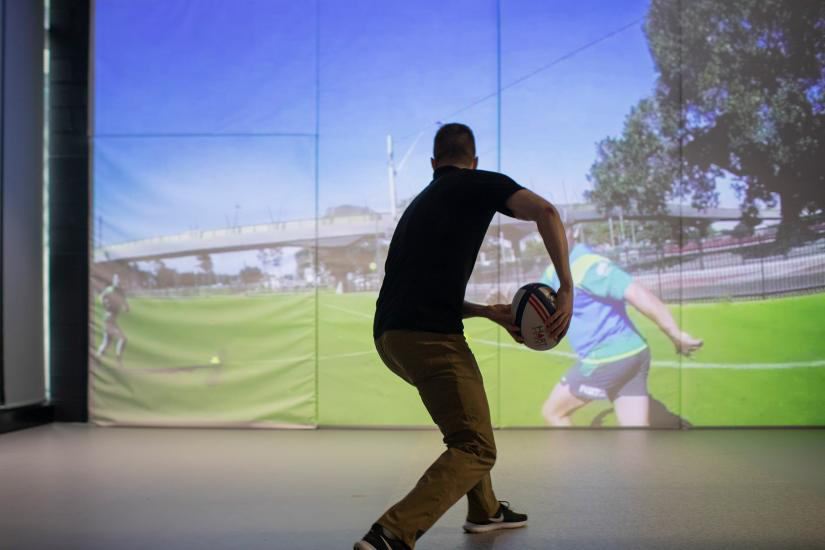 To further the adoption of VR technology, we also created a distinctive approach for the Skills Acquisition and motor learning lab by using a Sony laser projection and a custom 280° padded screen. The projection surface we were able to build offered a new level of flexibility and versatility, enabling athletes to practice performance and improve decision-making.